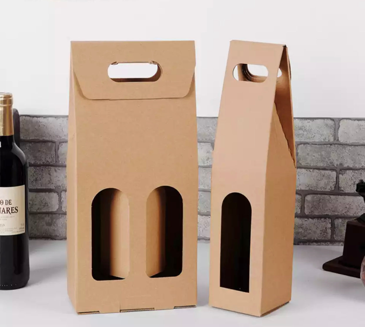 Elegante caixa kraft para garrrafas com opção de 1 ou 2 garrafas